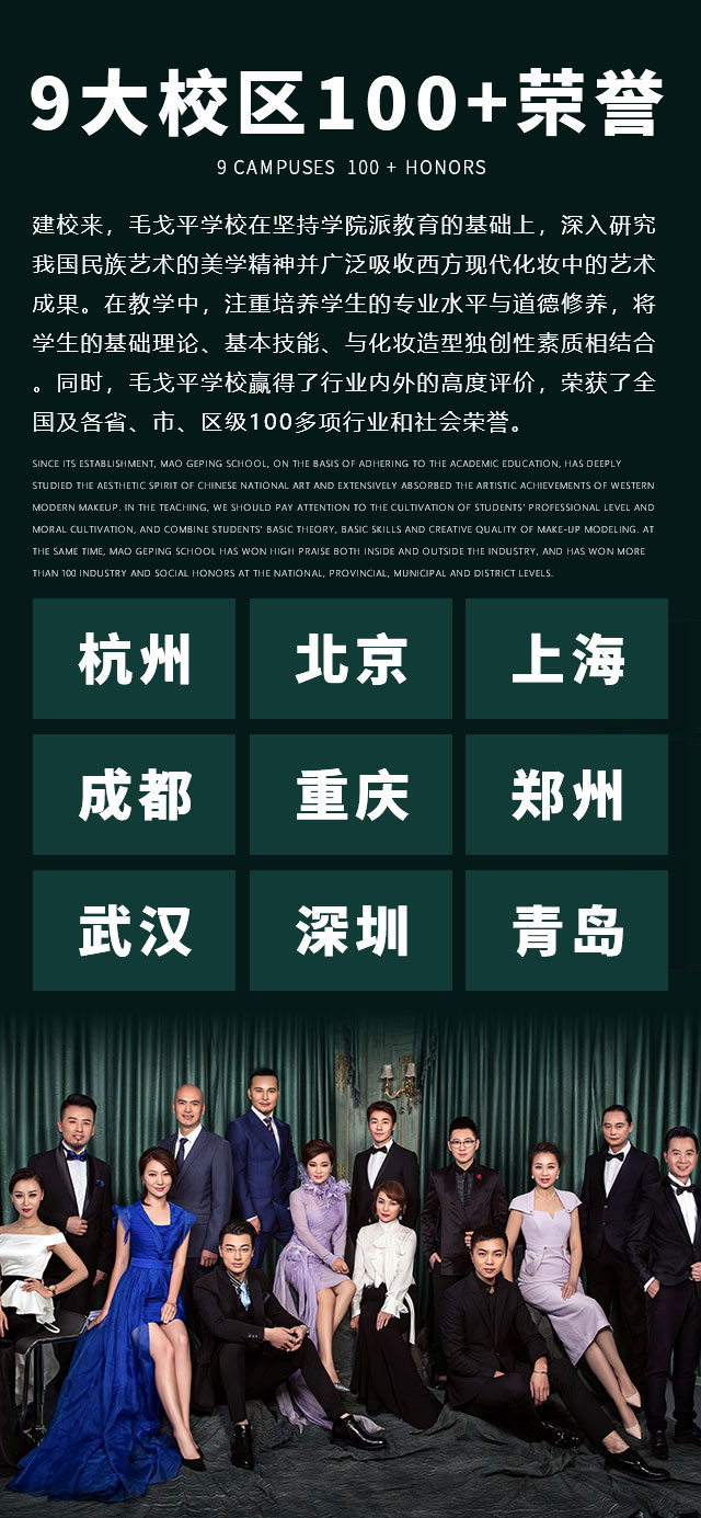 新班火热报名中 杭州毛戈平形象设计艺术有限公司(简称毛戈平学校)是由毛戈平化妆品股份有限公司创办的培训基地。教学模式